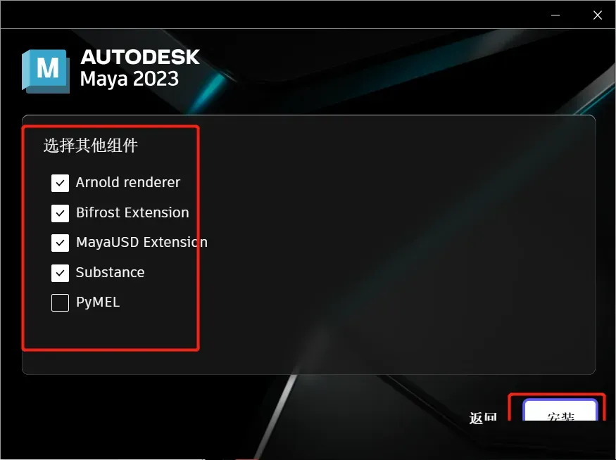 8、勾选需要安装的组件(不用的组件可不勾选),点击【安装】