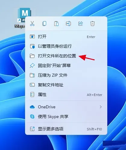 14、鼠标右击桌面【Maya2023】图标选择【打开文件所在的位置】