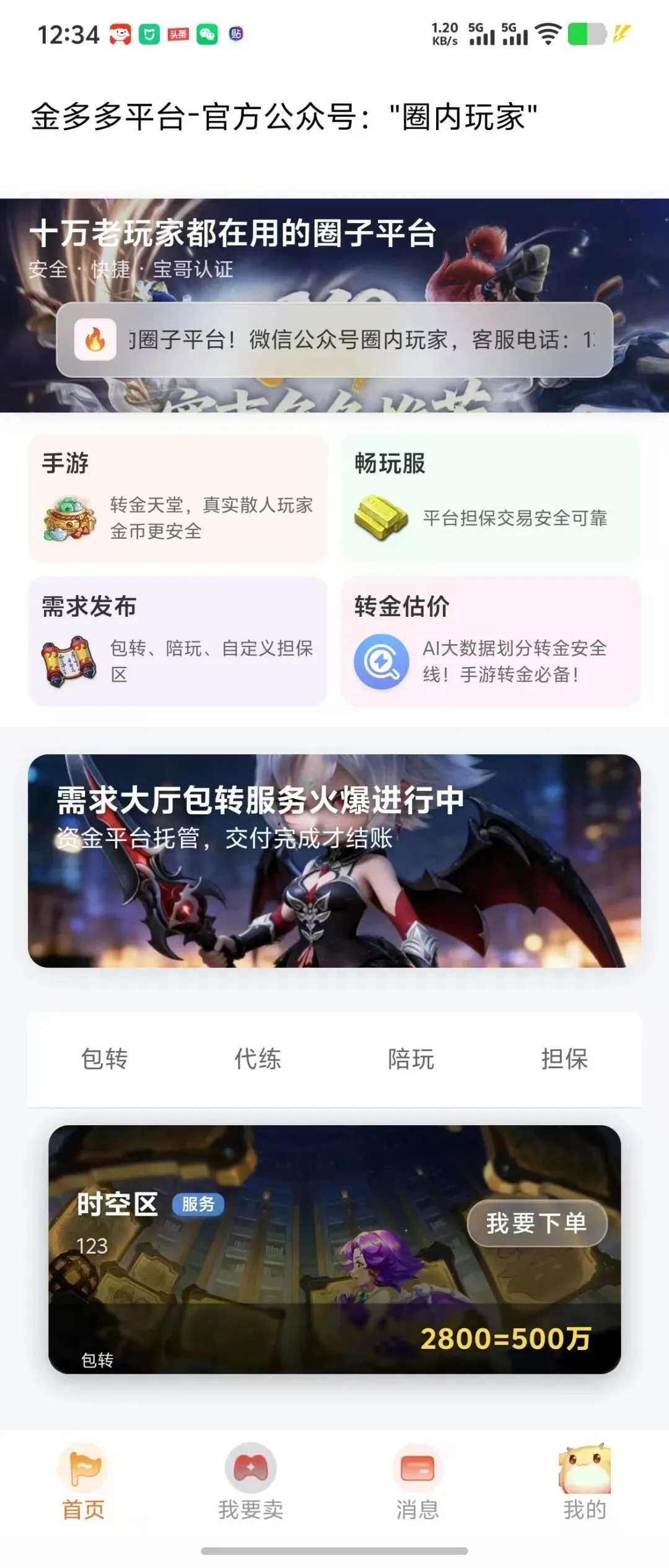 平台全新推出“包转服务”市场。如果你精通某个服务器的金币转移,可以在这里发布你的包转服务,静待土豪玩家下单。交易采用担保机制:买家下单后,你们自行对接完成服务;待买家确认收到金币并点击“确认收货”后,款项才会支付给卖家。整个过程平台护航,真正做到安全可靠,杜绝欺诈。
