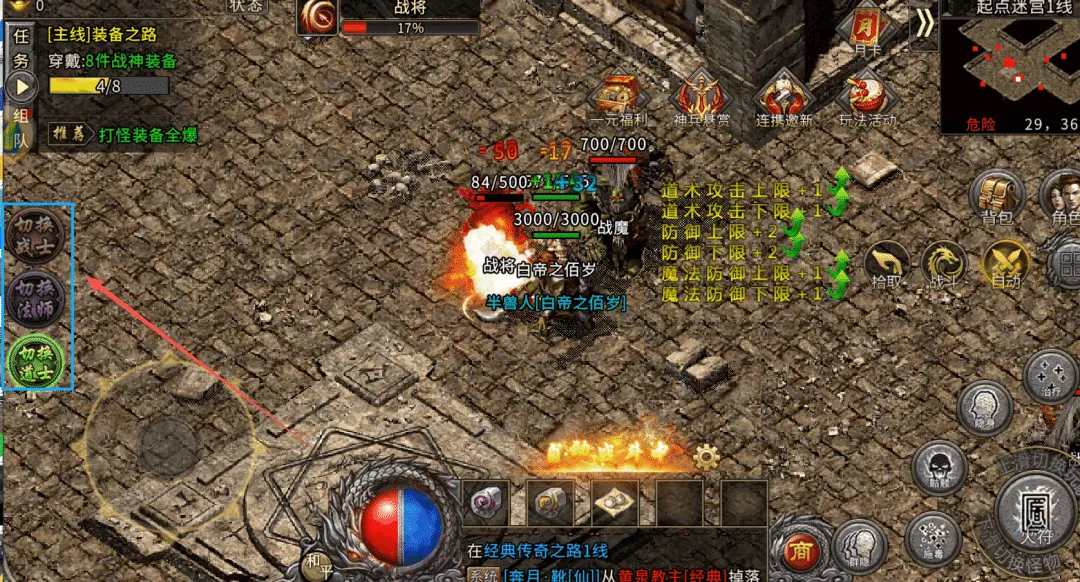 ✅ 正面硬刚/团战:切换战士,高血量、高防御加持,烈火剑法、野蛮冲撞等强力技能兼具爆发与控场,前排抗伤、收割残血,是沙巴克攻城、团战PK的核心主力,尽显传奇热血本色。