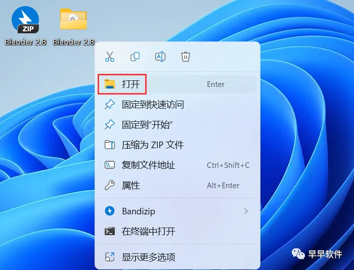 4、回到桌面,右键桌面上的【blender软件图标】,点击【打开】