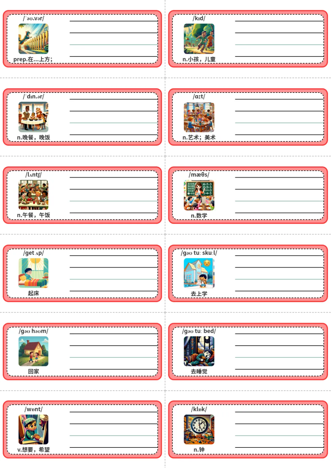 四年级(下)英语 单词条卡Unit 3《人教版PEP》