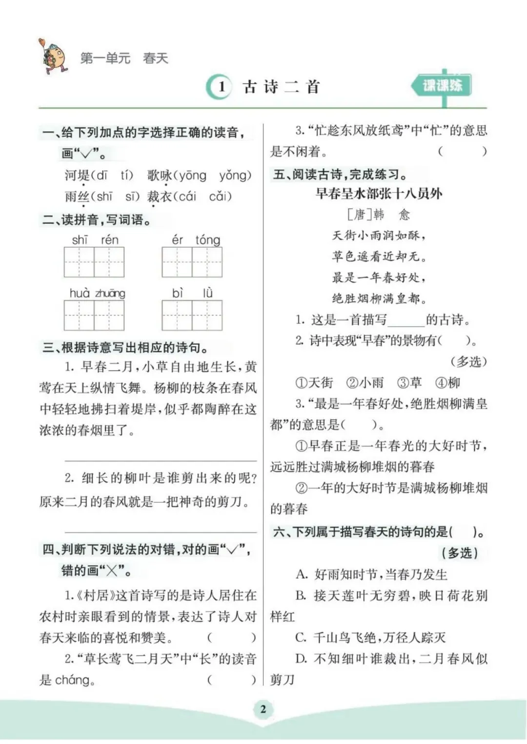 《语文2年级下册《预习卡+课课练》》