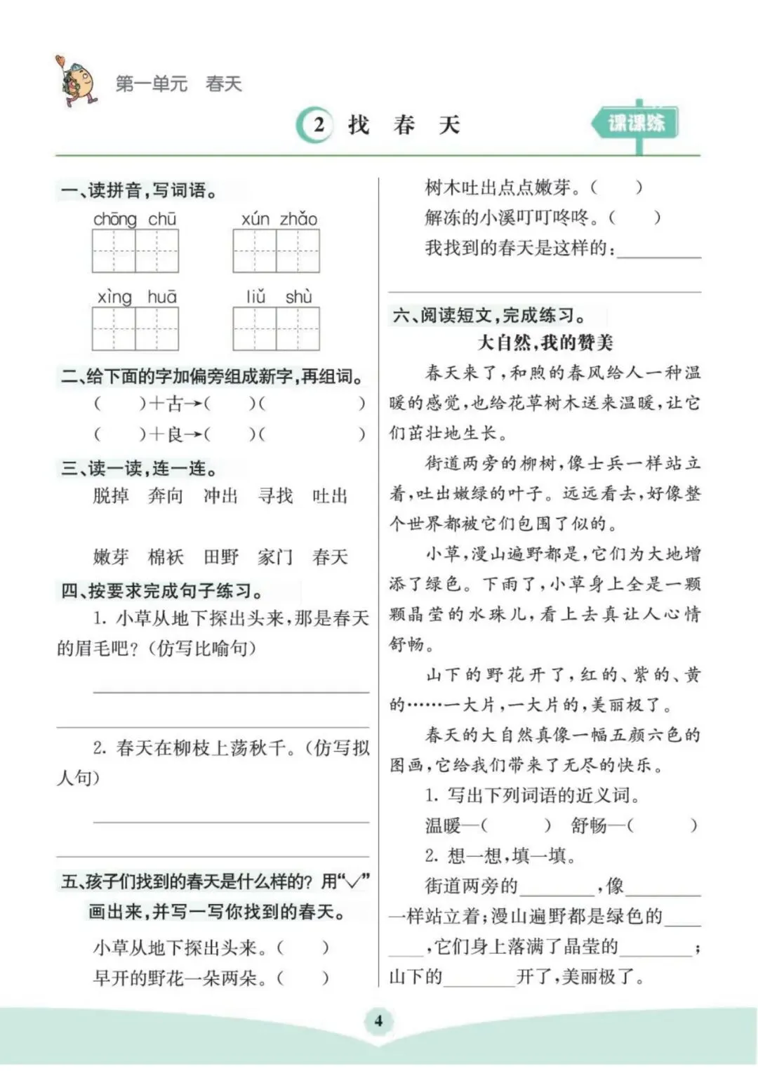 「2026春开心活页默写·语文1~6年级下册」