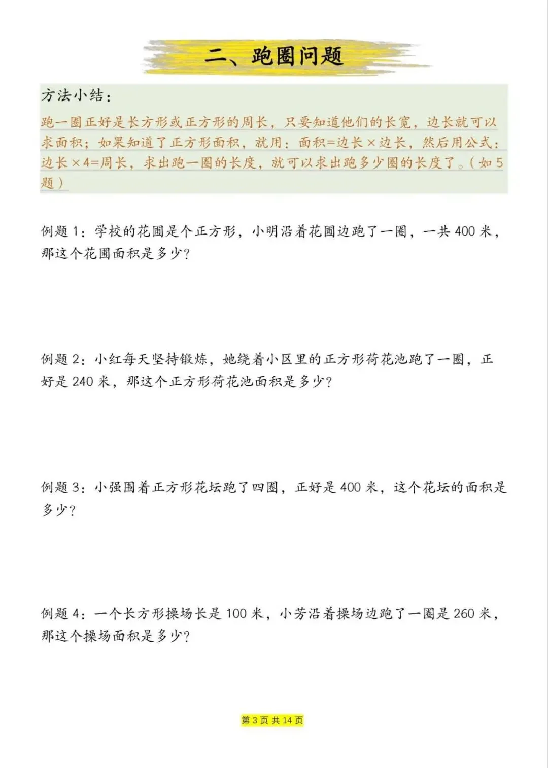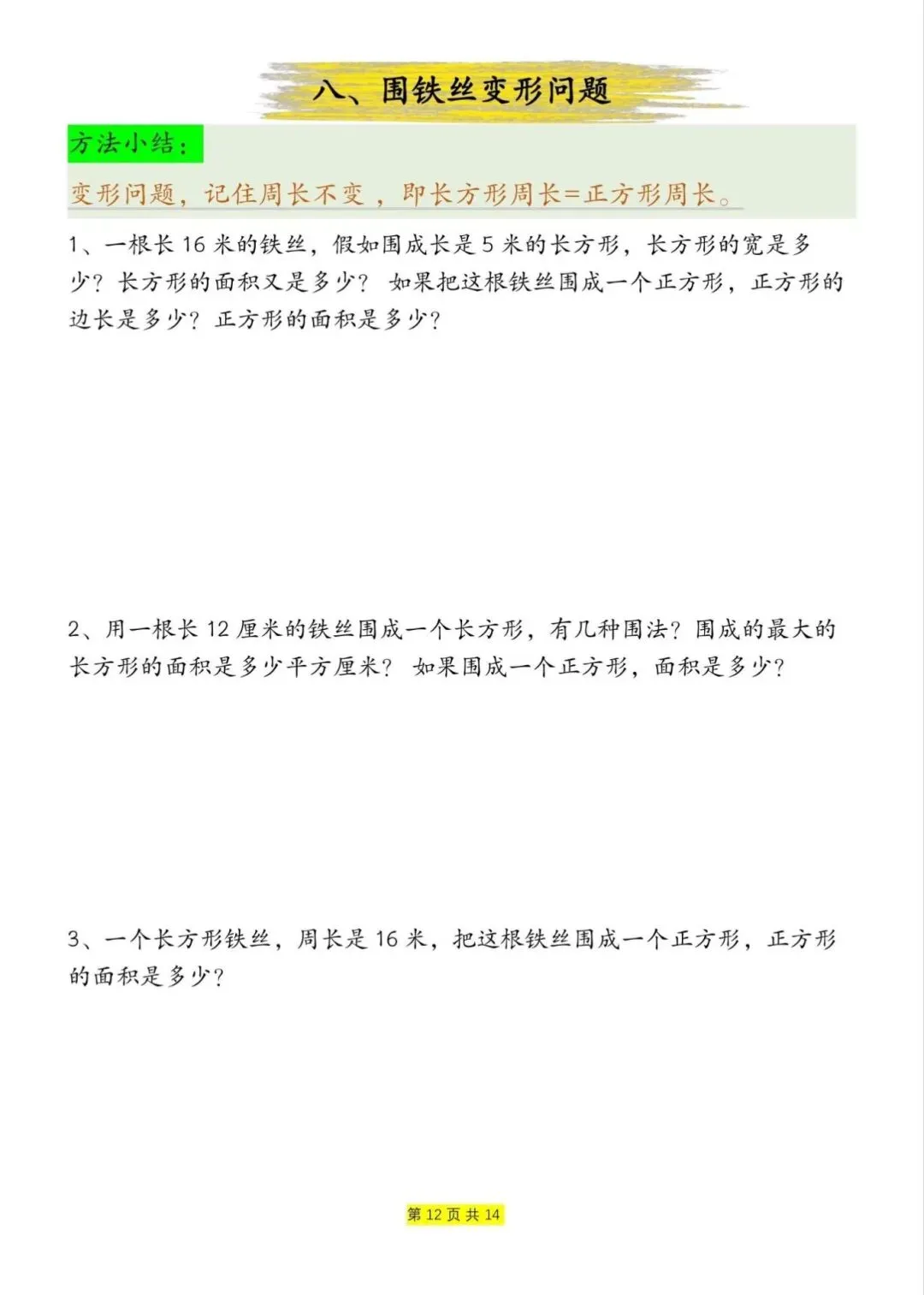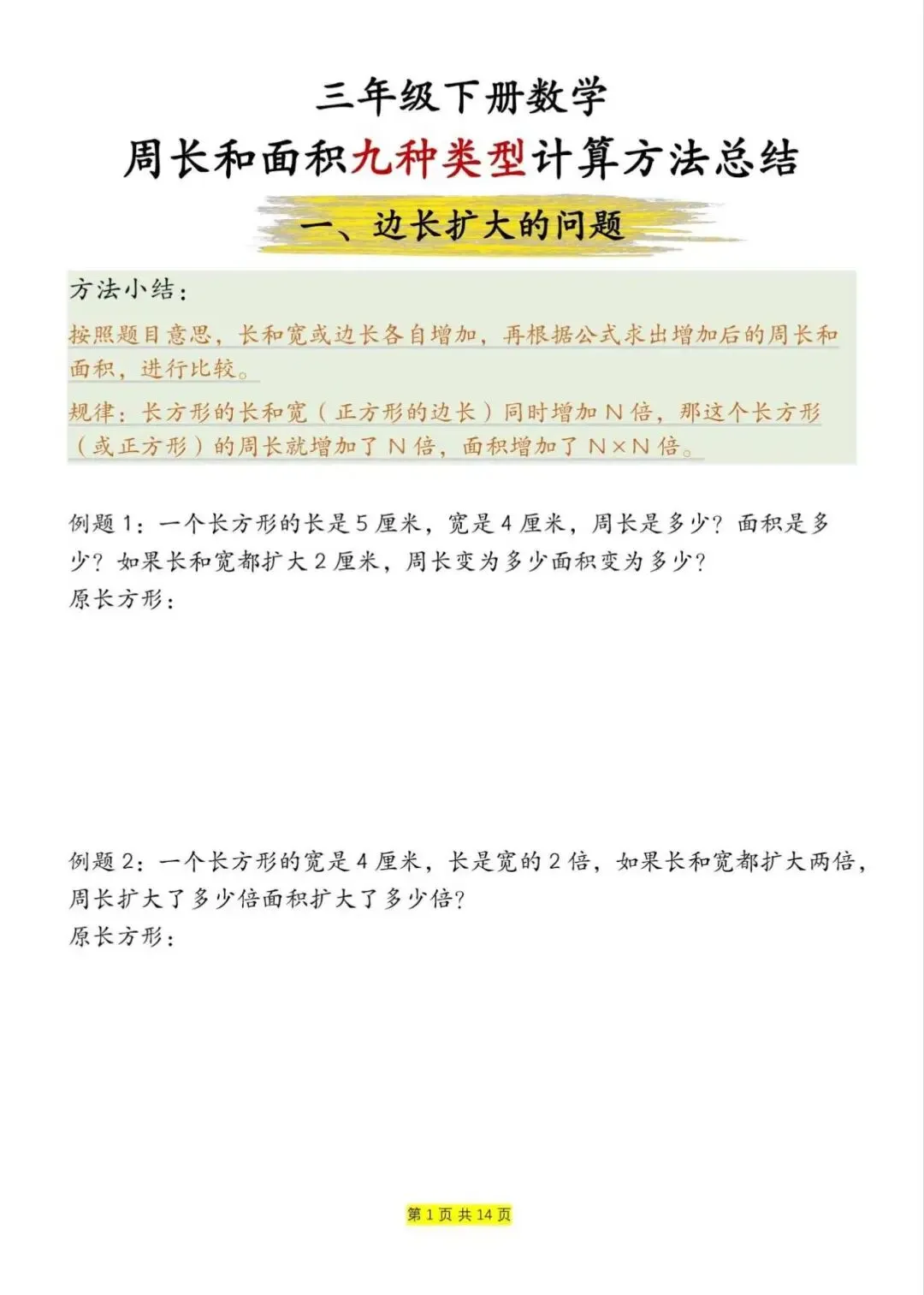 三年级下册数学周长和面积九大类型计算方法总结,电子版可下载打印