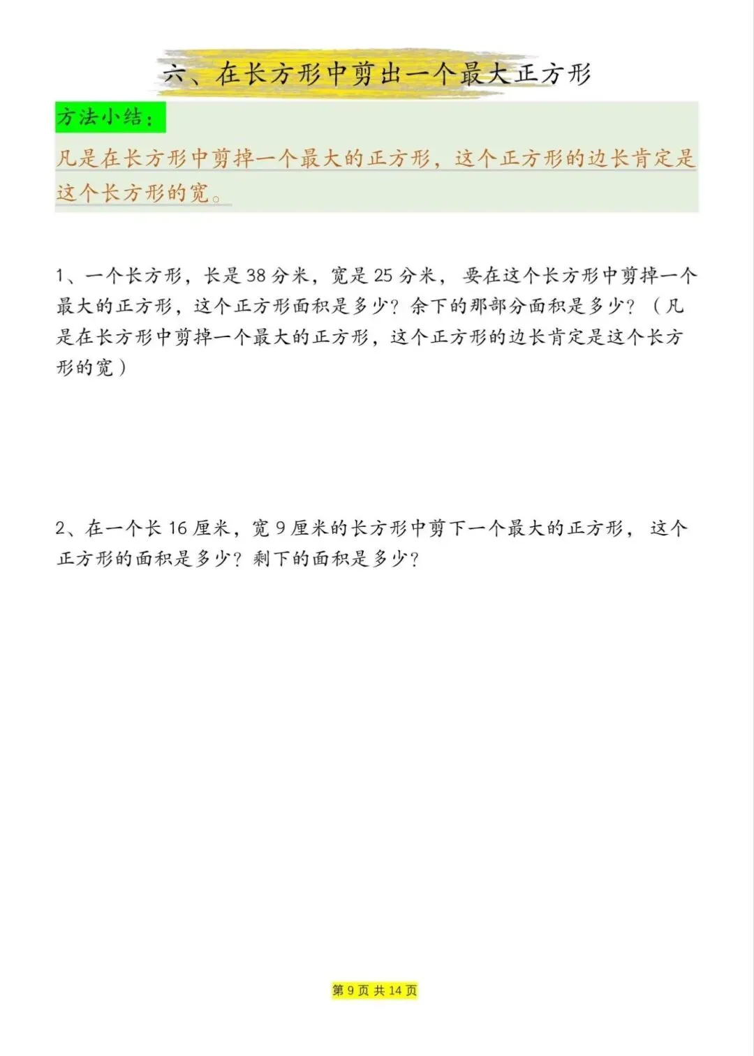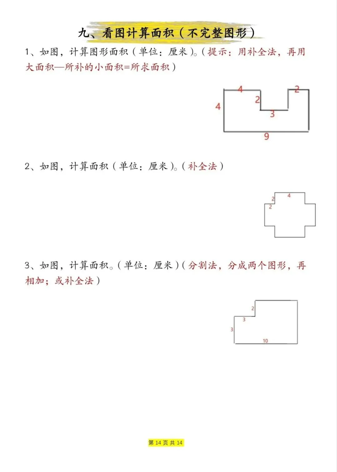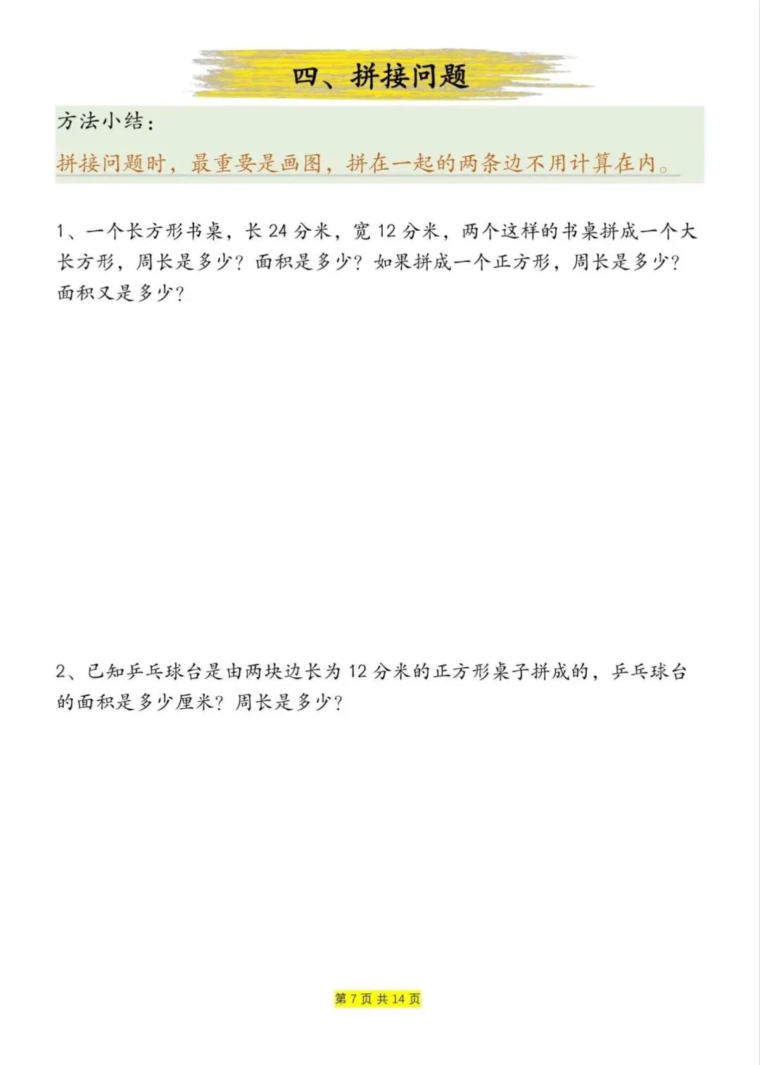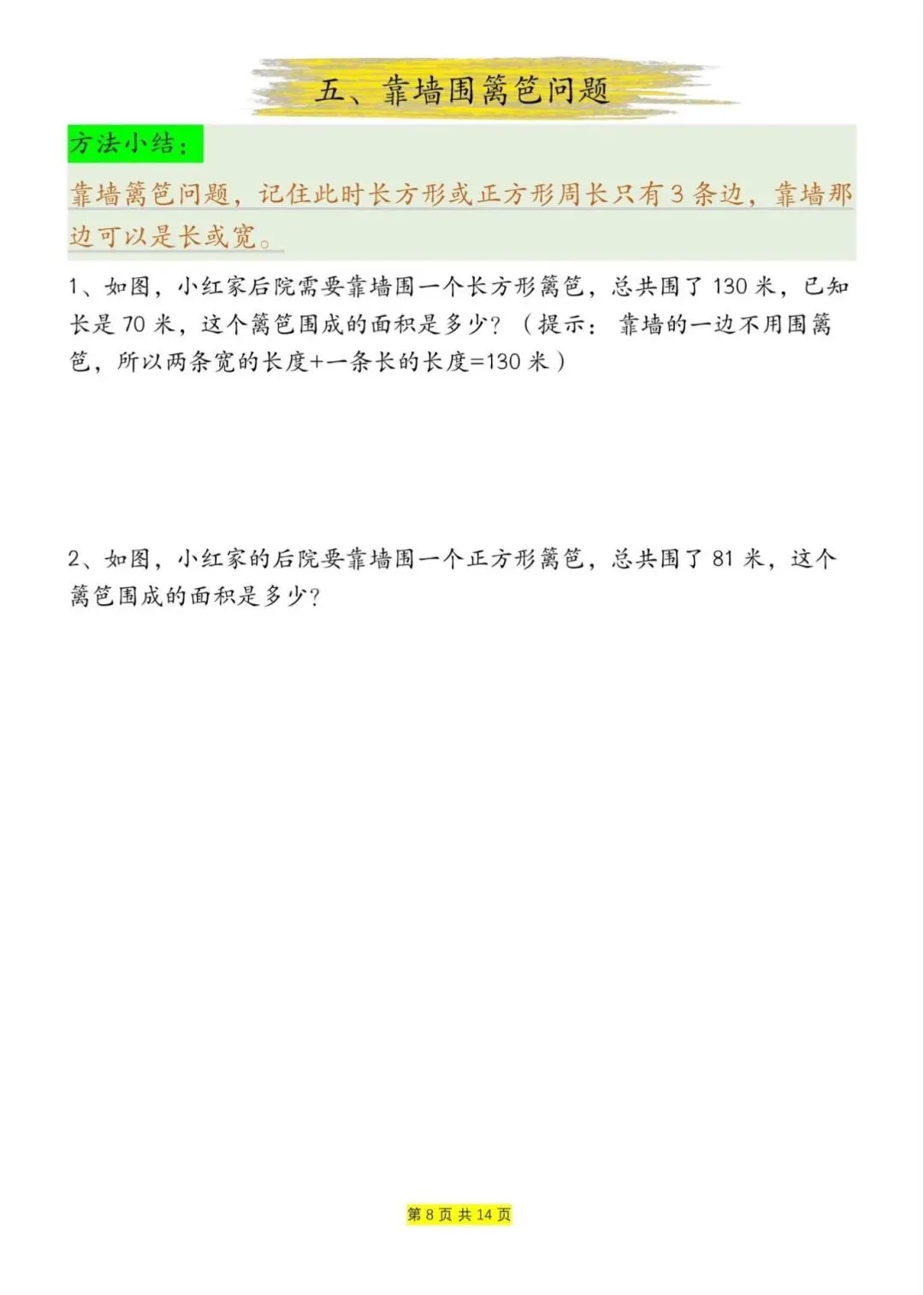 三年级下册数学周长和面积九大类型计算方法总结,电子版可下载打印
