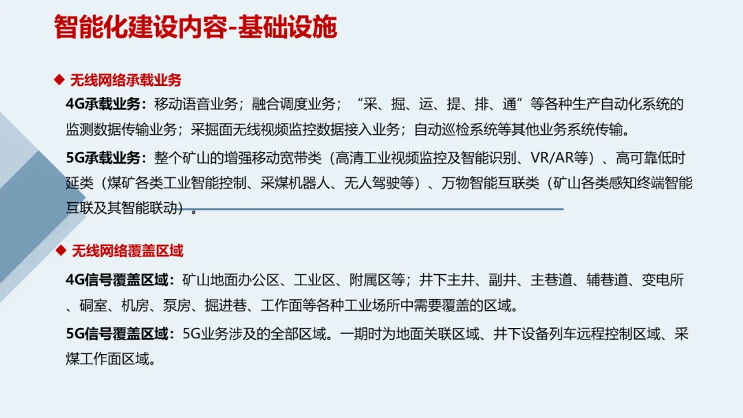 在技术层面,本方案充分利用5G、边缘计算、大数据等新技术,打造适合煤炭行业特性需求的设备和技术体系。通过构建云-边-端协同的智能平台,实现煤矿人、机、物、环等全生产要素的智能互联管理。同时,结合煤矿智能化应用,如AGV调度、设备远程控制与检测维护、预测性维护等,提升矿山的智能化水平。