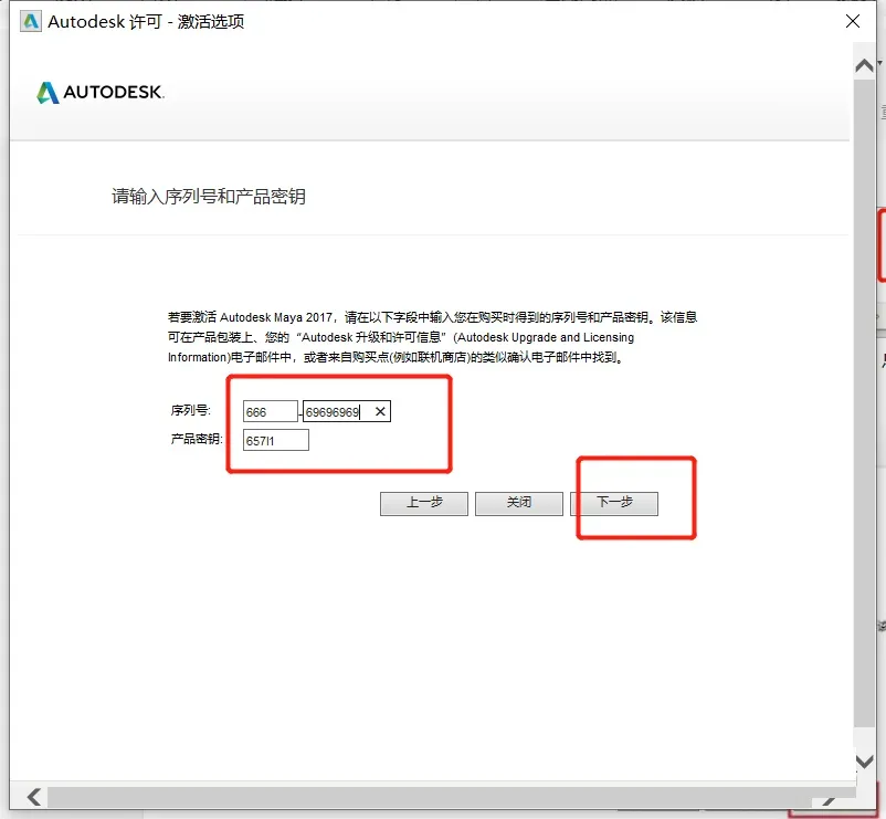 17、输入序列号【666-69696969】,输入产品密钥【657J1】,点击【下一步】