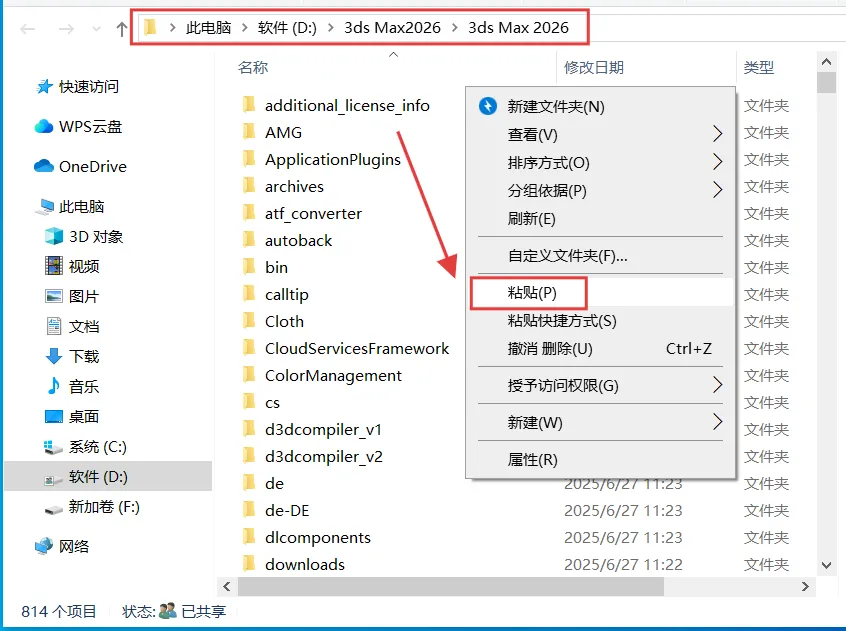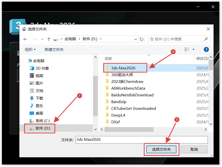 [温馨提示]:我们提供用户下载的所有内容均来自互联网。仅限技术交流,不得用作商业。注意!!!开始解压安装前一定要退出杀毒软件 (不然会误删激活工具)(包括第三方杀毒软件和电脑自带、防火墙、Windows Defender和实时保护等会拦截删除激活文件,安装完再打开!)(安装前请务必把旧版本先卸载清理干净,否则会出现安装错误等问题,如果报1603错误代码,文章末尾有解决方法)1.把下载好的压缩包解压出来,没有解压软件安装一个再操作。2.双击打开解压好的【3ds Max2026】文件夹。4.选中【Setup】程序,鼠标右键点击【以管理员身份运行】。7.可以在磁盘D创建一个【3ds Max2026】文件夹,选中后点击【选择文件夹】。(注意!安装路径不要有中文,否则可能使用过程中有问题)9.根据自己的需求勾选需要的组件,选择好后点击【安装】。(没有特殊要求直接默认全部勾选就行)10.耐心等待3ds Max2026程序安装完成。1.回到解压好的文件,双击打开【Crack】文件夹。2.选中【3dsmax】程序,鼠标右键进行【复制】操作。(也可以选中直接Ctrl+C键复制)3.在电脑桌面选中【3ds Max 2026图标】然后鼠标右键点击【打开文件所在的位置】。4.鼠标移动在空白位置,右键把刚复制的程序【粘贴】到此处。(可以直接Ctrl+V键进行粘贴)6.再次回到电脑桌面,把【3ds Max 2026图标】鼠标右键进行【删除】。7.点击电脑桌面任务栏中的【开始图标】—【所有应用】—展开【Autodesk】文件夹 — 把【3ds Max 2026 - Simplified Chinese】图标直接拖动到电脑桌面即可创建中文版3ds Max 2026快捷打开方式.1.复制此路径【C:\Program Files (x86)\Common Files\Autodesk Shared\AdskLicensing】粘贴到我的电脑上方的地址栏然后按回车键打开,选中下图所示文件,鼠标右键【以管理员身份运行】。如果打开没有看到一般是被隐藏了,点击【查看】再把【隐藏的项目】和【文件扩展名】勾选上就可以显示出来。2.依次打开【C:\Program Files (x86)\Common Files\Autodesk Shared\】如果有【AdskLicensing文件夹】直接删除。3.依次打开【C:\ProgramData\Autodesk\】把【AdskLicensingService文件夹】也删除掉,操作完,就可以重新正常安装了!1.安装提供的所有下载文件均是网络收集,请于下载后的24小时内删除。如需体验更多乐趣,请支持正版。2.我们提供用户下载的所有内容均来自互联网。如有内容侵犯您的版权或其他利益的,请联系我们会在收到消息后24小时内处理。