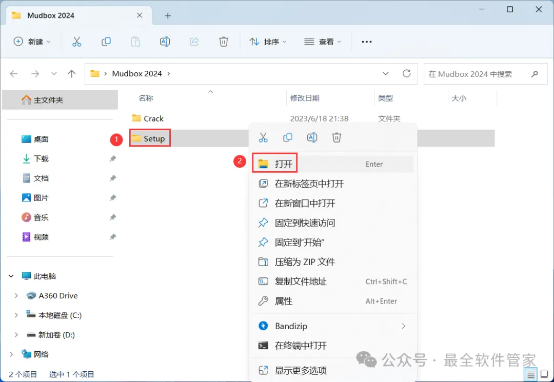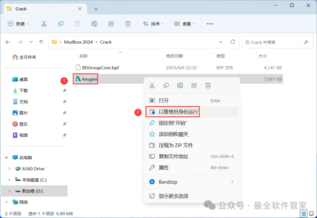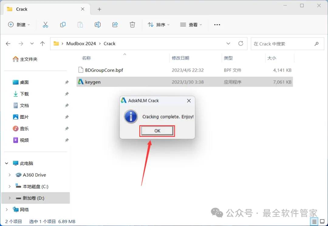 9、回到Mudbox 2024文件夹,找到【Crack】文件夹,右键【打开】它