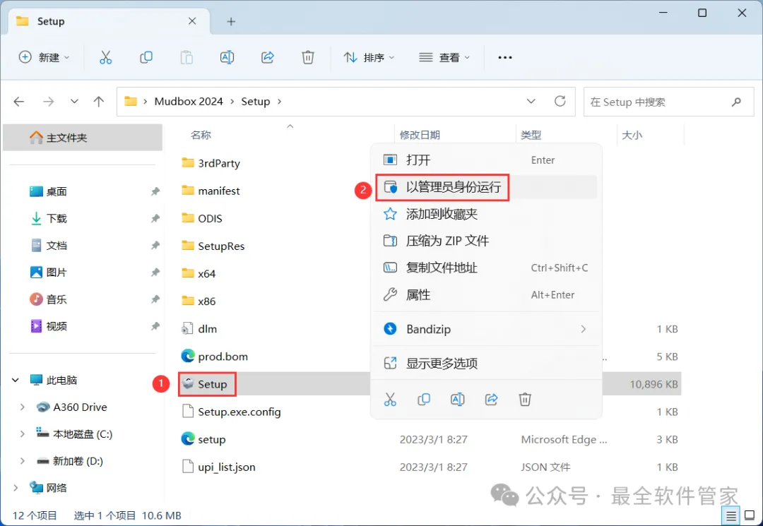 4、找到【Setup】应用程序,右键选择【以管理员身份运行】它