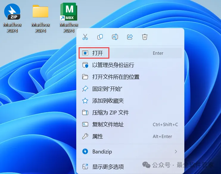 12、回到桌面,右键桌面上的【Mudbox 2024软件图标】,点击【打开】