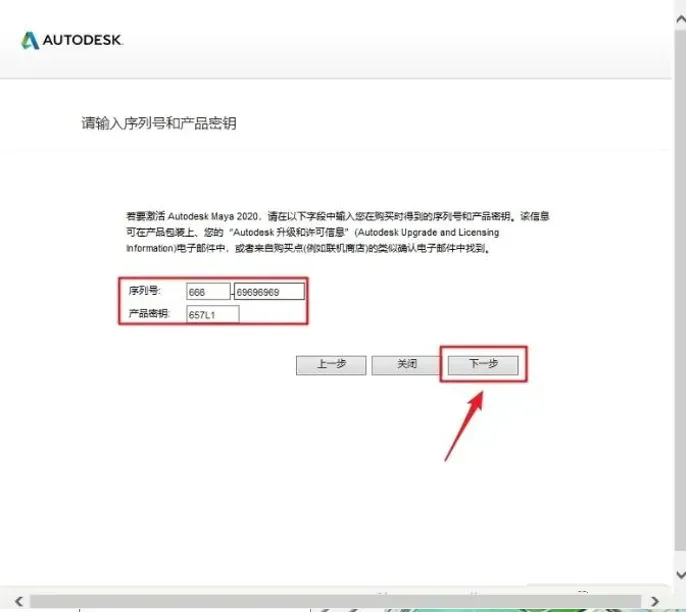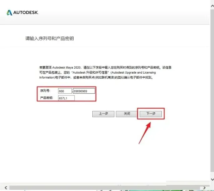16、输入序列号【666-69696969】,输入产品密钥【657L1】,点击【下一步】