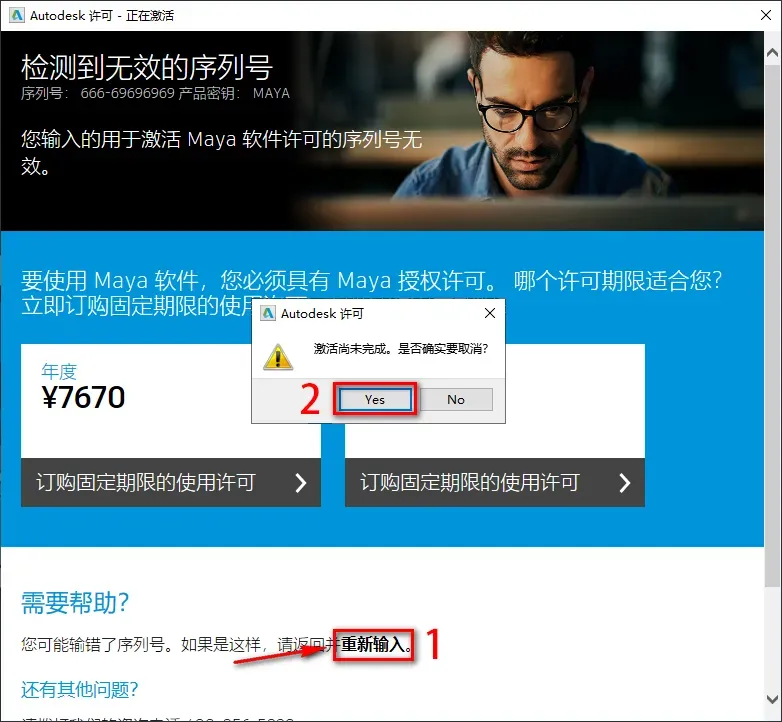 20、输入激活码:①使用快捷键“Ctrl+C”复制【Activation】后框中的激活码;②使用快捷键“Ctrl+V”将激活码粘贴到【激活码输入框】中;③点击【Quit】;④点击【下一步】