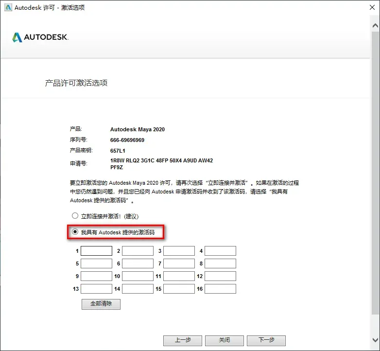 17、选择【我具有Autodesk提供的激活码】(不要关闭此界面)