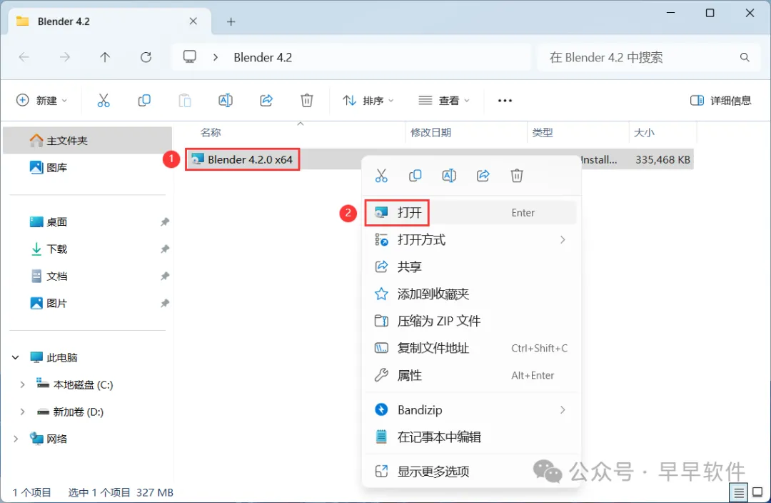 1、下载Blender 4.2软件安装包到电脑上,右键选择【解压到Blender 4.2\】