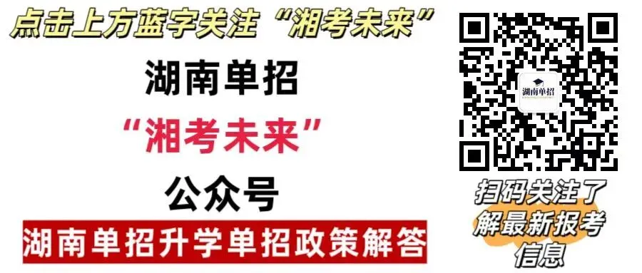 大家在备考过程中,可以把“湘考未来”微信公众号,推荐给身边需要单招的同学,这里很多文章对大家单招帮助会很大。
