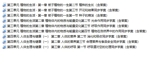 免费下载||人教新版_七年级下册生物学案(含答案)