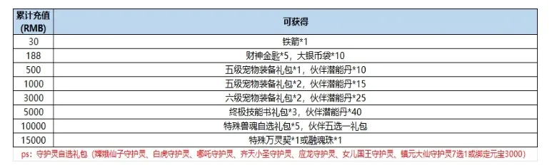 💌补充说明:特殊万灵契可从以下 7 款守护灵中任选 1 款,或选择绑定元宝 ×3000:嫦娥仙子守护灵、白虎守护灵、哪吒守护灵、齐天小圣守护灵、应龙守护灵、女儿国王守护灵、镇元大仙守护灵。