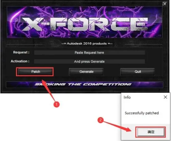 17、弹出注册机,点击【Patch】键,再点击【确定】选项。