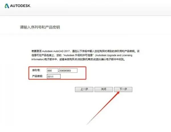 16、输入序列号:666-69696969,产品密钥:001i1,点击【下一步】选项。