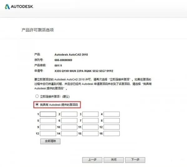 17、勾选我具有Autodesk提供的激活码。