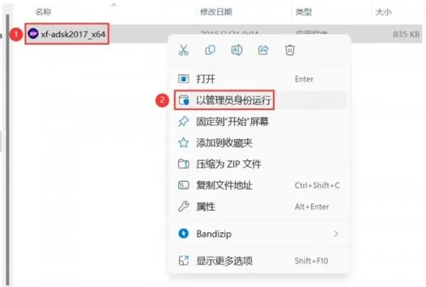19、右击AutoCAD2017 64位注册机,点击【以管理员身份运行】选项即可。