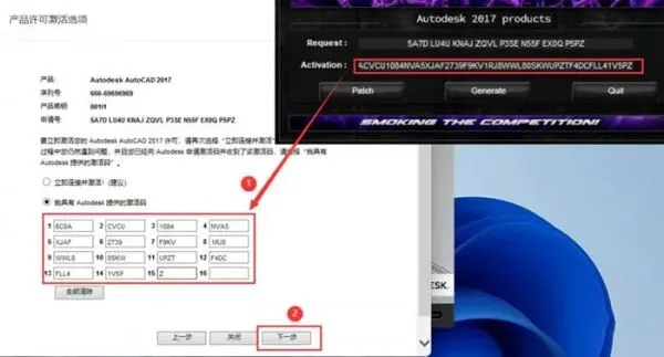 23、然后选择注册机里面的激活码,复制粘贴到注册页面框中,点击【下一步】选项。
