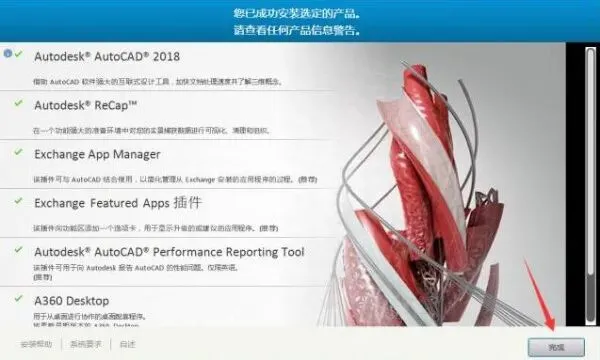 21、AutoCAD2018已成功激活后,点击【完成】即可。