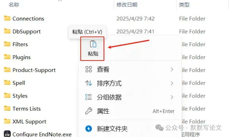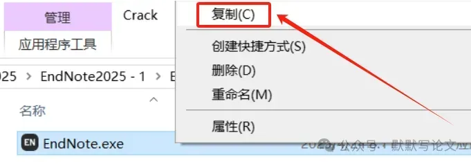 15.打开软件安装位置,步骤8可查看,路径为:D:\Program Files (x86)\ EndNote 2025,再右键文件夹的空白处,点击【粘贴按钮】。