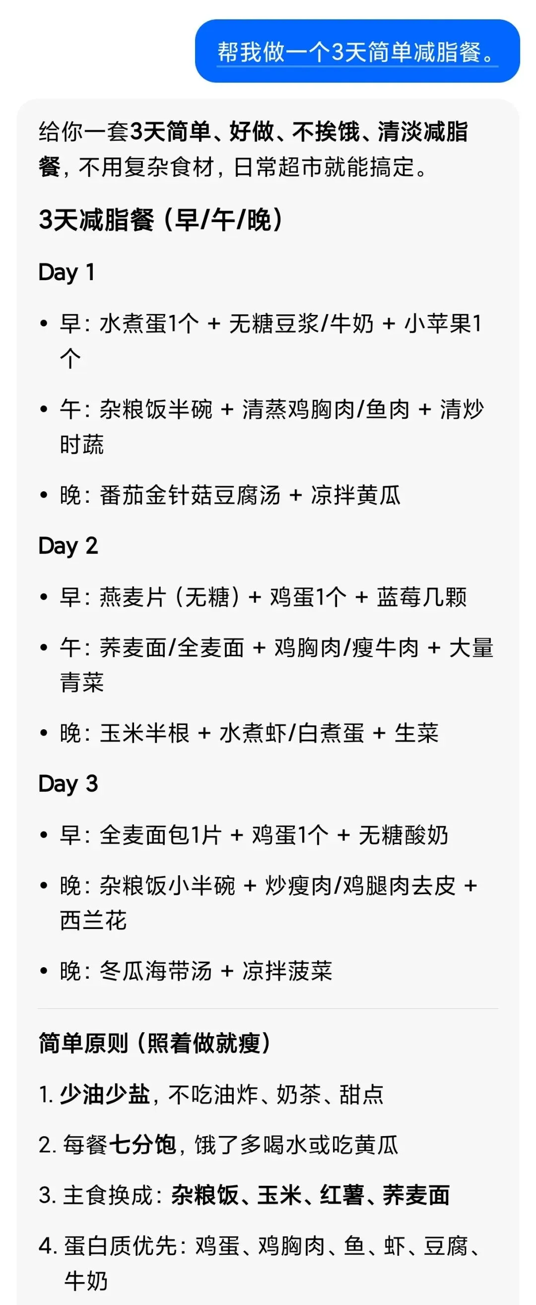 记住一句话:有啥事,就在下面框里打字,发给豆包。三、第三步:3句万能口令,先背下来以后不管做什么,都用这3句开头:1. 豆包,用最简单的话告诉我……2. 帮我一步一步写……3. 帮我做零基础能看懂的……只要会这3句,豆包你就会用一半了。四、第四步:今天必学的3个实操1. 问问题豆包,感冒了吃什么好得快?它会用大白话告诉你,比查百度更清楚。2. 写文案帮我写一条早安文案,简短温暖。一秒生成,直接复制发朋友圈。3. 做计划帮我做一个3天简单减脂餐。不用动脑,直接照着做。