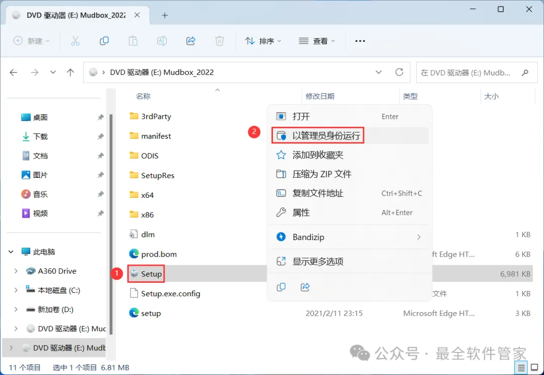 4、找到【Setup】应用程序,右键选择【以管理员身份运行】它