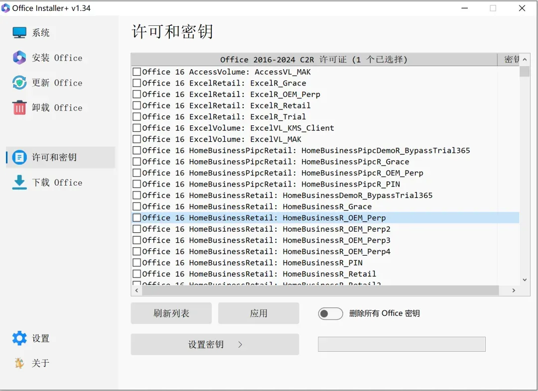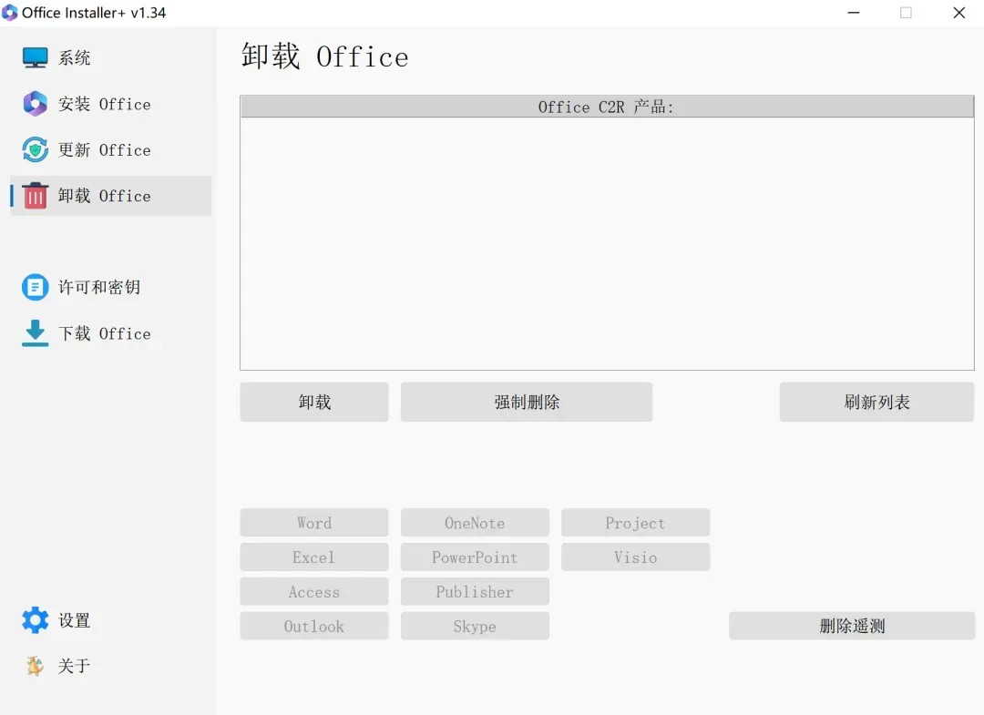 在此基础上,它集成了“强力卸载”与“激活管理”功能。 如果电脑里有旧版本残留导致新版装不上,用它跑一遍“强制移除”能彻底清理注册表。