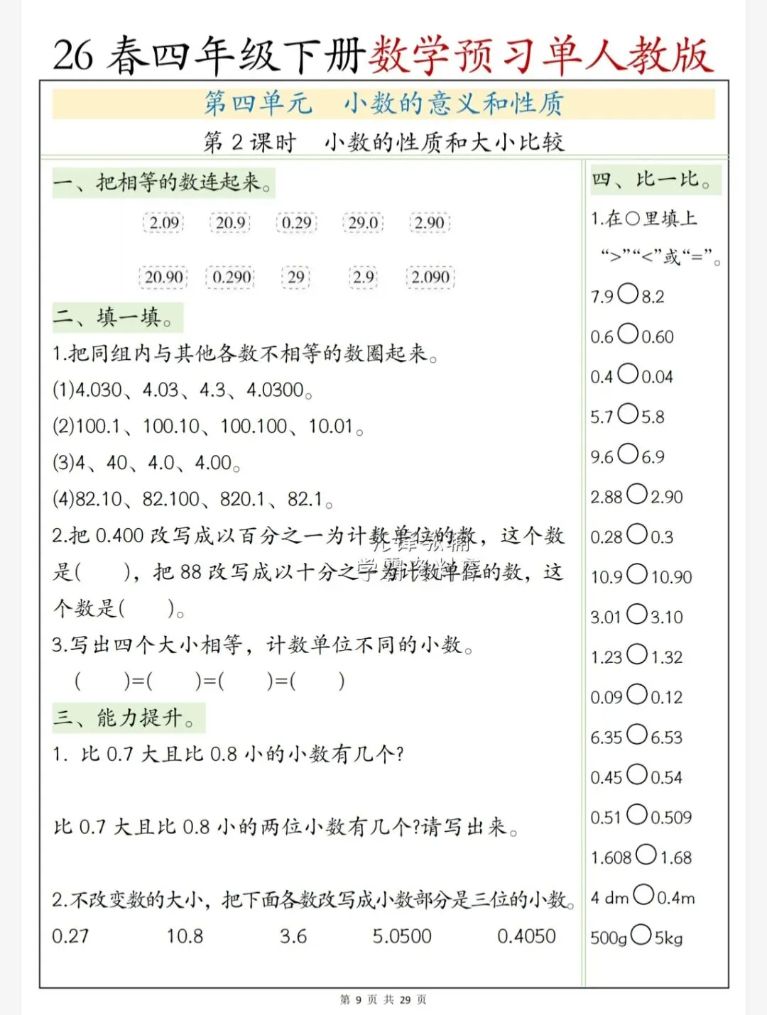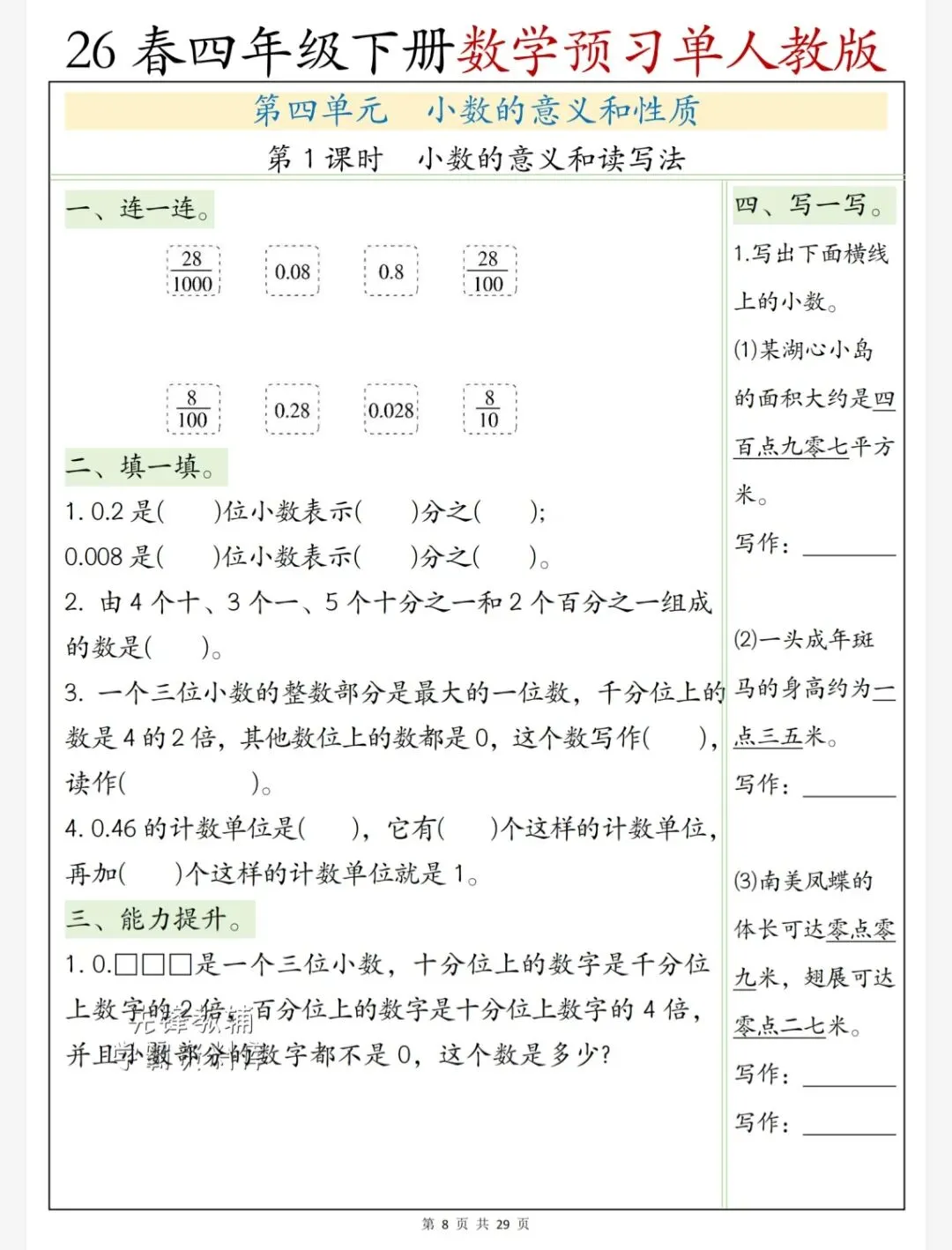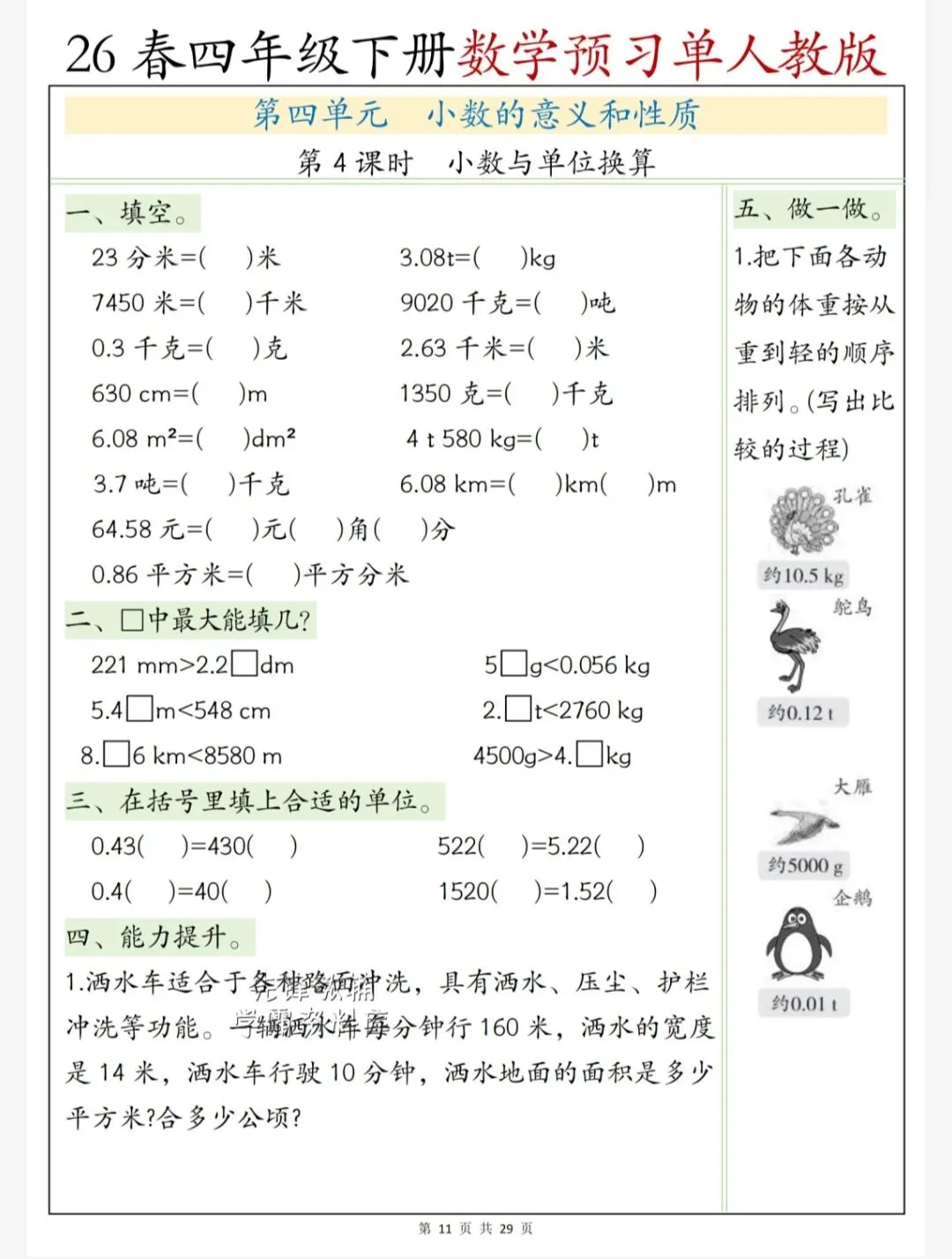 今天给大家整理了26春四年级数学人教版下册第四单元预习单,转发给朋友或班级群,受益更多人,帮助孩子学习!