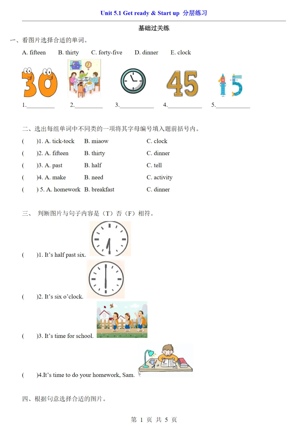 【免费下载】三年级(下)英语 Unit 5.1 Get ready & Start up分层练习《外研版(三起)》,PDF电子版,共5页,可打印