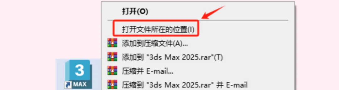 5.鼠标右击桌面【3ds Max2025】图标选择【打开文件所在的位置】。