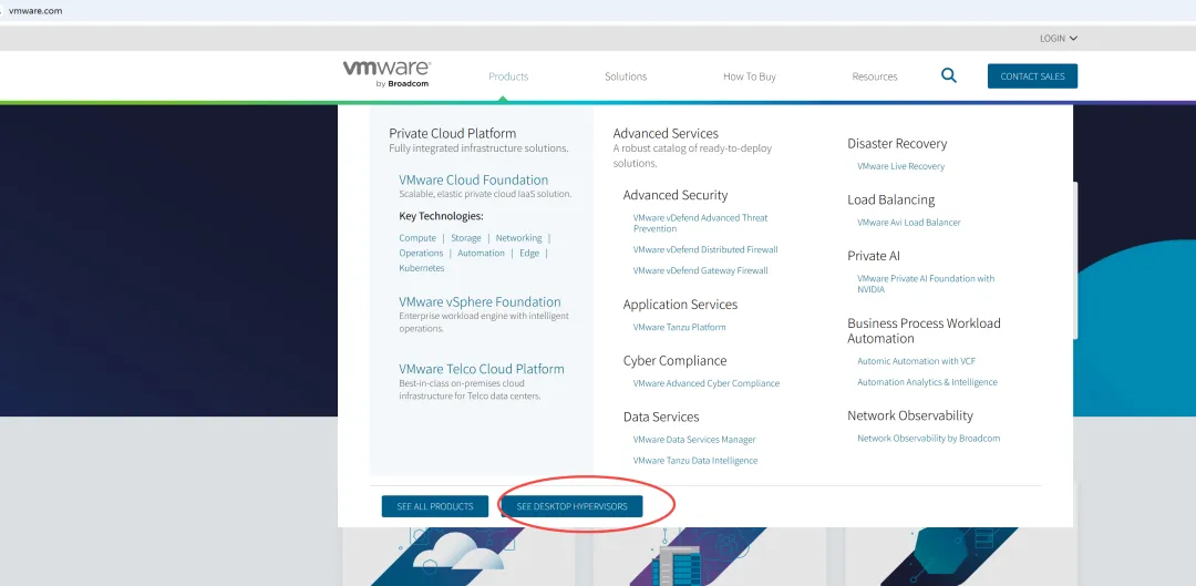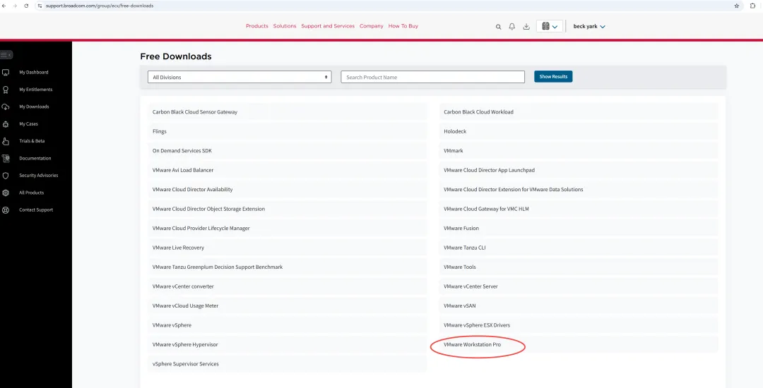 官网链接:https://www.vmware.com/进入官网,点击下面按钮下载虚拟机如果你没有注册登陆,会提示注册登陆,登陆后会跳转到这个链接,如果没有,点击这个官网链接https://support.broadcom.com/group/ecx/downloads