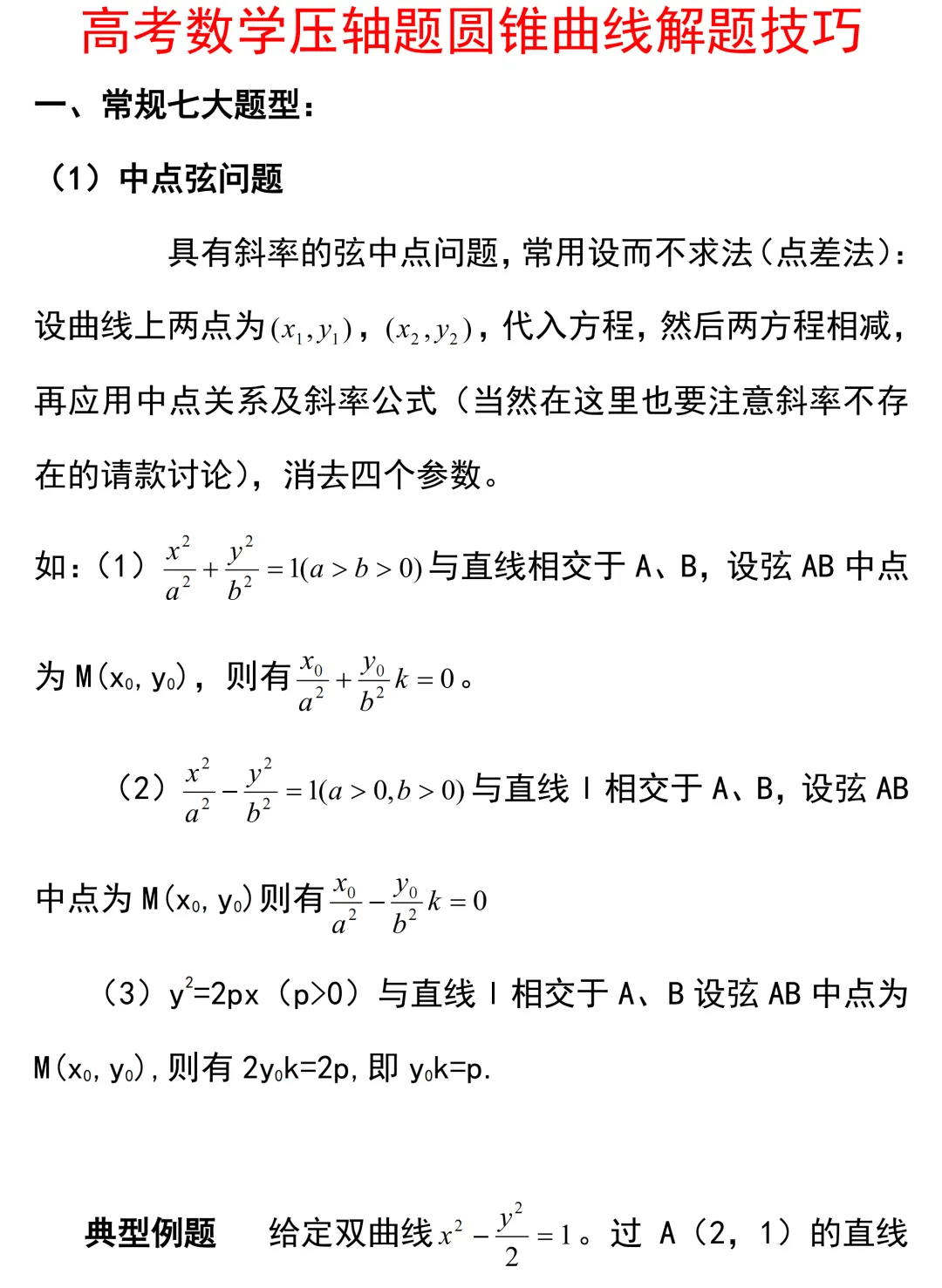 高考数学压轴题圆锥曲线解题技巧,限时下载!