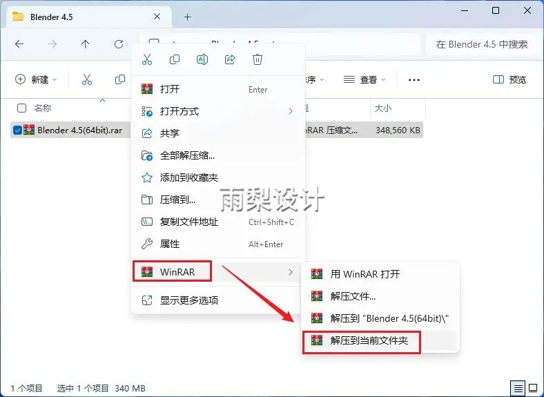 1.右键【下载的安装包】选择【解压当前文件夹】