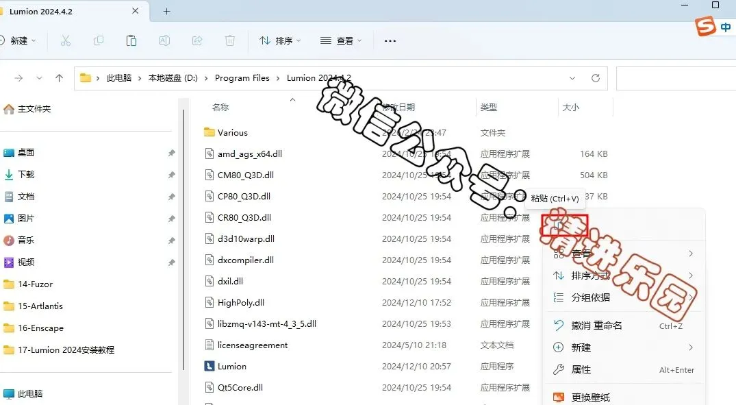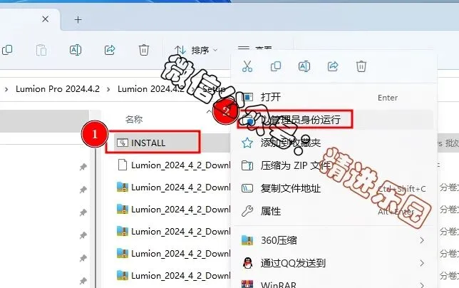3.鼠标右键“INSTALL”,选择“以管理员身份运行”。4.可以更改安装路径,小编这里选择安装在D盘,安装路径不要有中文,9.鼠标右键点击“Lumion 2024”,选择“打开文件所在的位置”11.右键“Ipro2024420-zmco”,选择“以管理员身份运行”12.输入密码“cgpersia-zmco”,点击“Proceed”