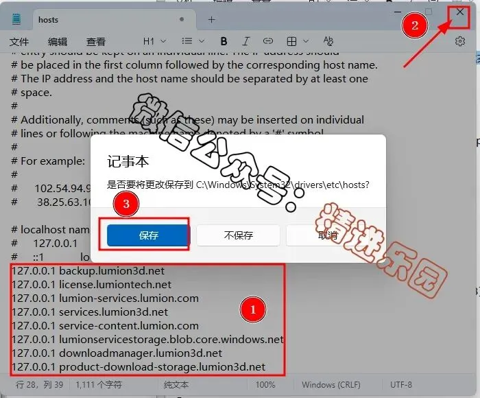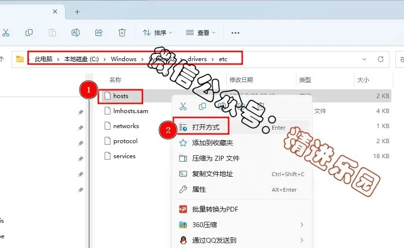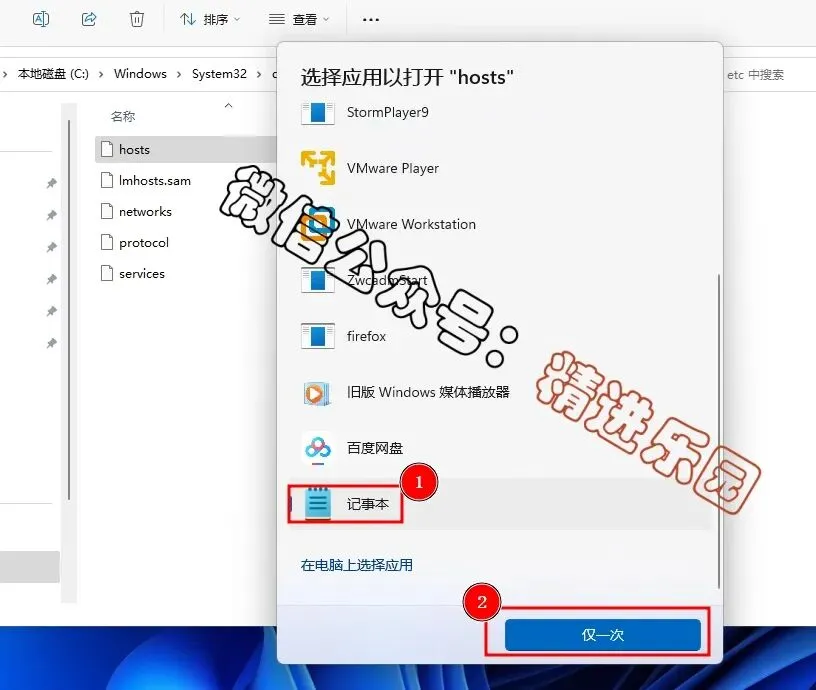 15.打开路径C:\Windows\System32\drivers\etc,然后在hosts文件上,右键选择打开方式。17.添加以下8行信息,然后保存后退出此窗口。温馨提示:部分电脑无法直接保存,解决办法是将【hosts】文件复制到电脑桌面修改之后再复制到原位置替换。127.0.0.1 backup.lumion3d.net