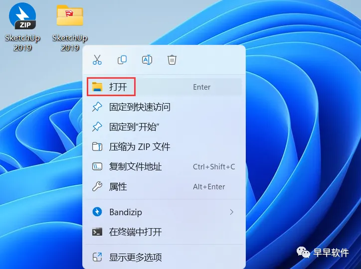17、回到桌面,右键桌面上的【SketchUp 2019软件图标】,点击【打开】