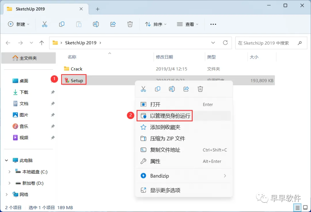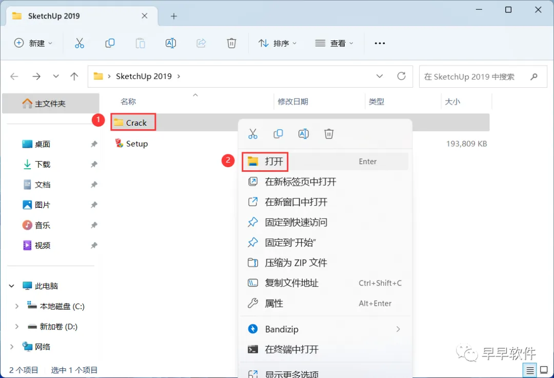 11、回到SketchUp 2019文件夹,找到【Crack】文件夹,右键【打开】它