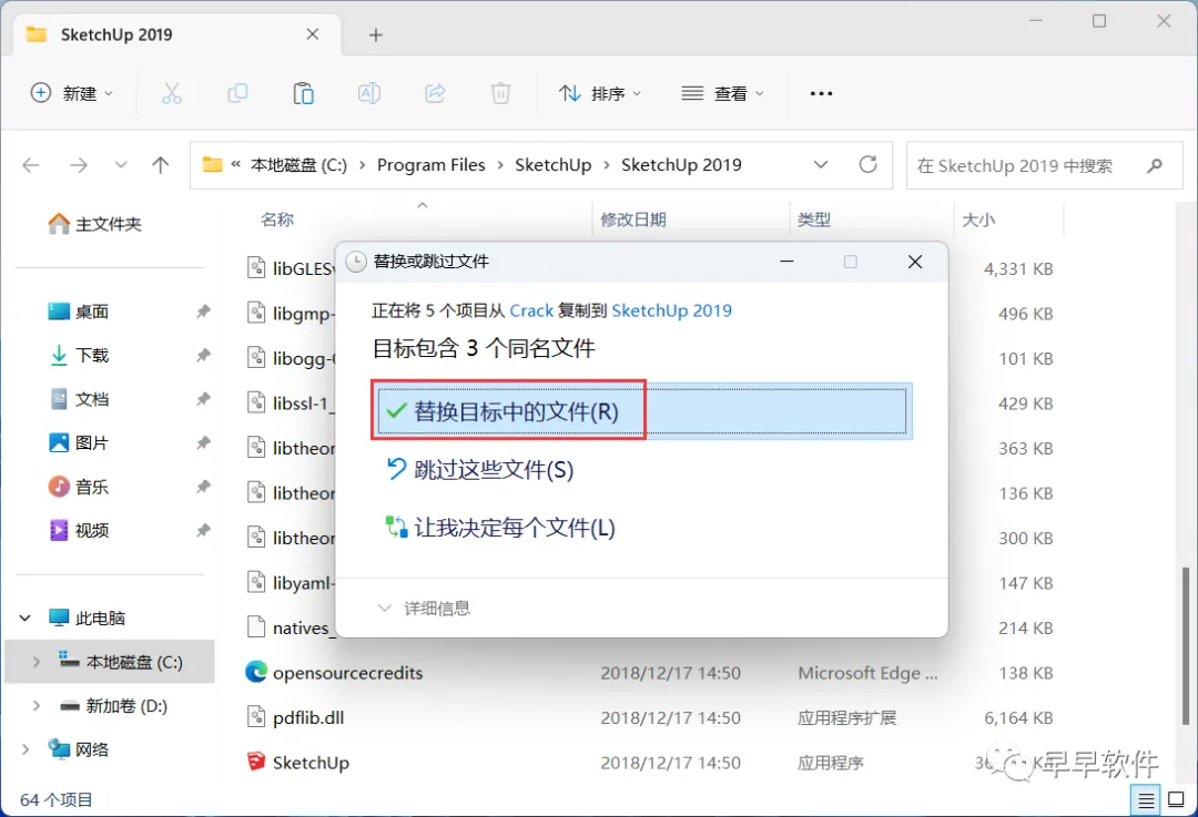 15、点击【替换目标中的文件】