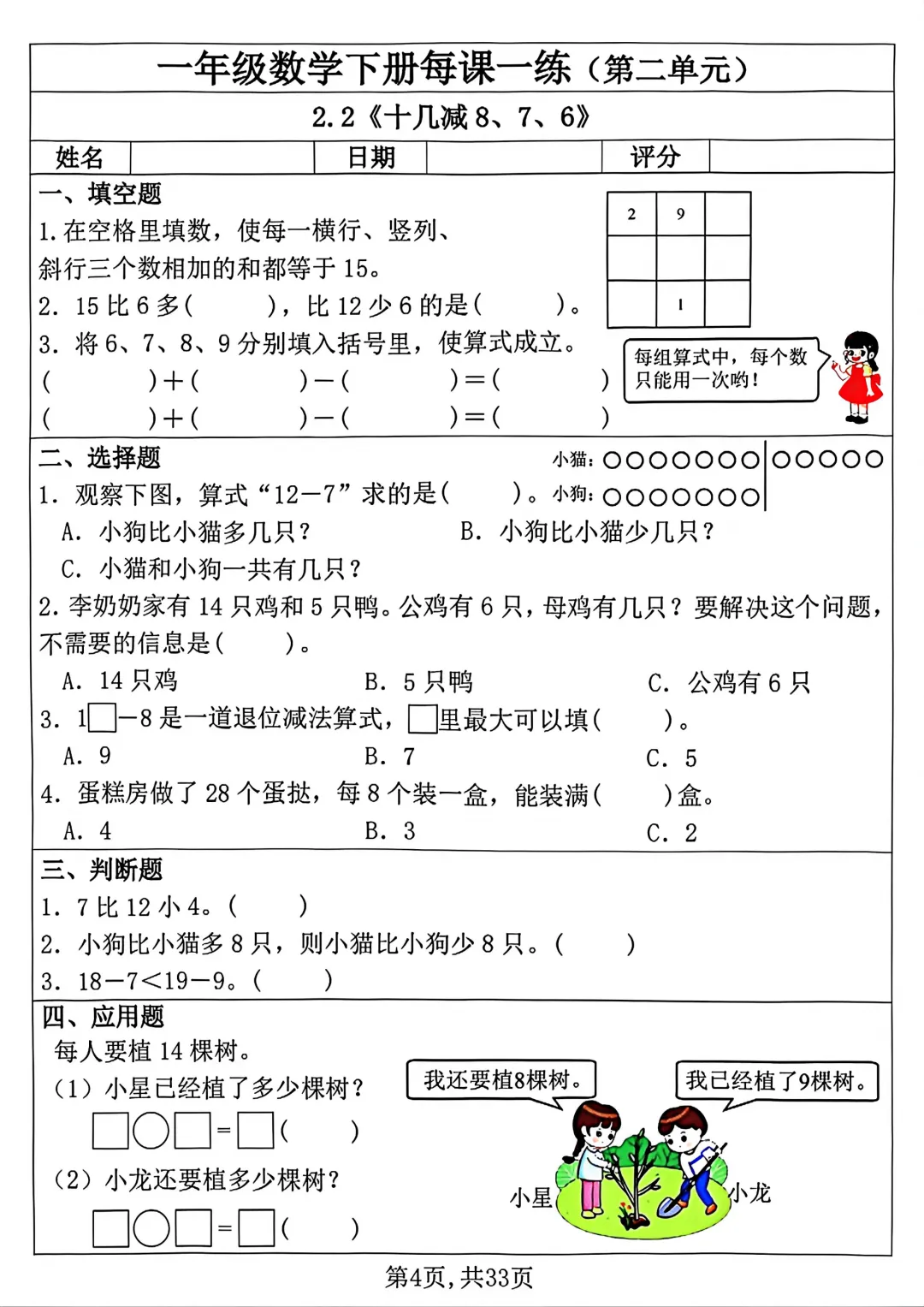 同步课本每一课,基础知识点全覆盖📝题型简单易懂,贴合低年级孩子水平课前预习、课后巩固、单元复习都超合适每道题带详细答案,家长不用费心批改完整电子版,可下载打印,免费领超省心每天练一页,夯实数学基础,计算不丢分💯