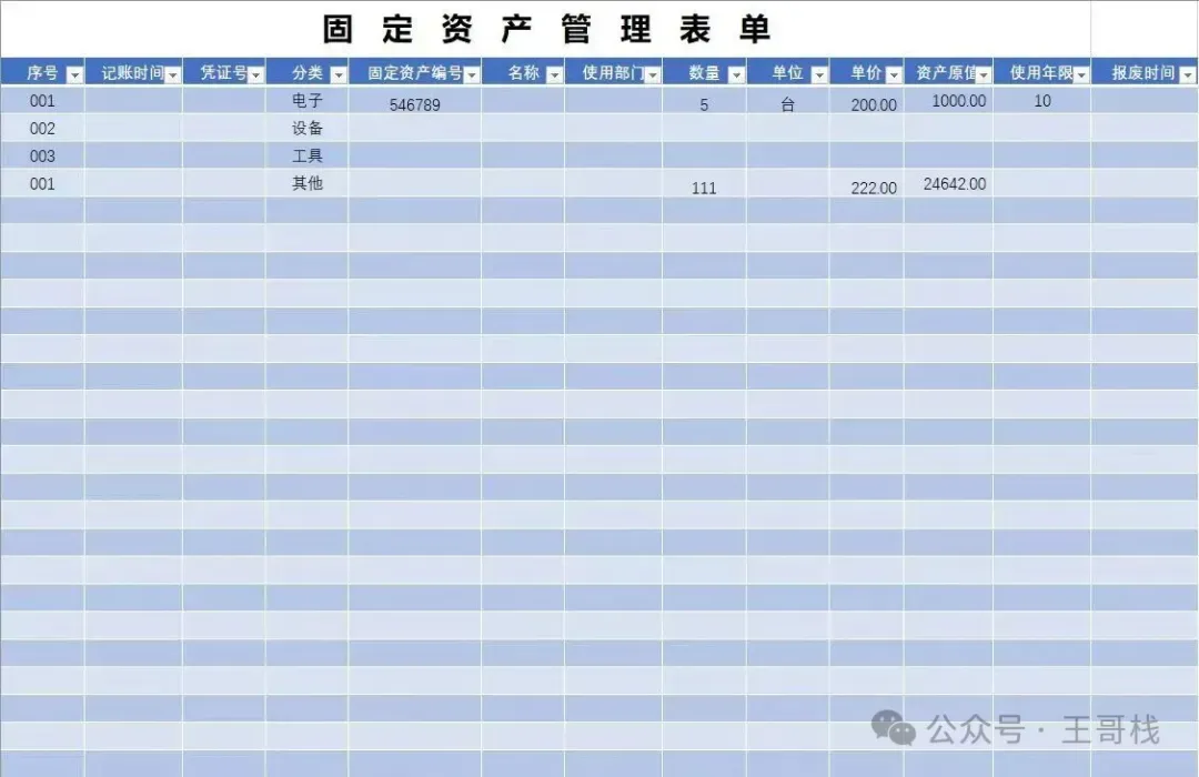 本 文 内 容 分 享【固定资产明细表】
