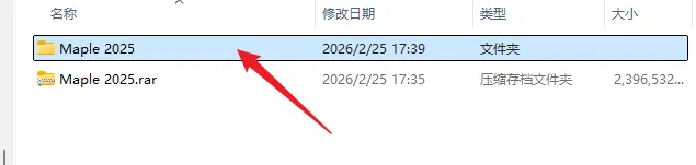 14.打开安装包解压后的【Maple 2025】文件夹,双击打开【Crack】文件夹。