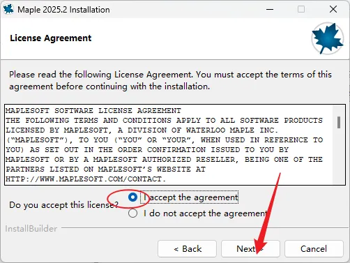 5.选择【I accept……】,点击【Next】。