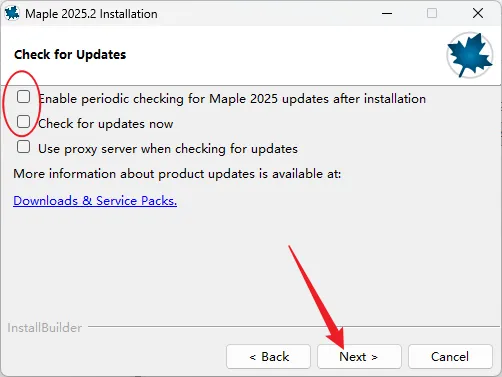 10.取消勾选【Enable periodic……】和【Check for ……】,点击【Next】。