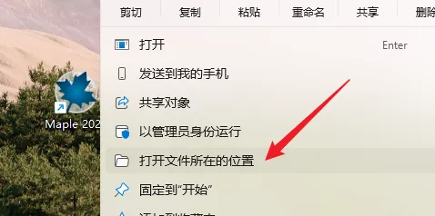 16.鼠标右击桌面【Maple 2025】图标选择【打开文件所在的位置】。